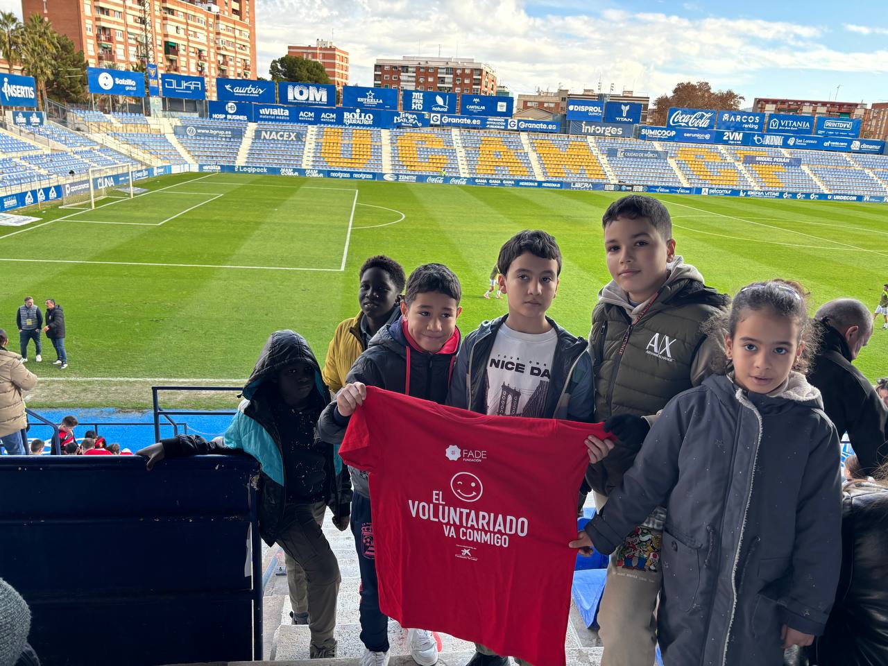 El pasado domingo 18 de enero los menores participantes en el proyecto ‘Secunda Educa: Un Presente con Futuro’ de la Fundación FADE vivieron una jornada inolvidable en el Estadio Heredia 21 La Condomina, donde presenciaron la emocionante victoria del UCAM Murcia CF por 3-2 frente al Salerm Puente Genil en un partido correspondiente a la decimonovena jornada del Grupo IV de la Segunda RFEF. El equipo murciano, dirigido por Germán Crespo, logró adelantarse con goles de Alberto Soto (27’ y 59’) y Dani Aquino (79’), goles con los que los menores vibraron y celebraron como si los hubieran estado esperando toda la vida.